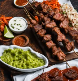 Skewered meats marinated in African spices, delivering a burst of flavor.